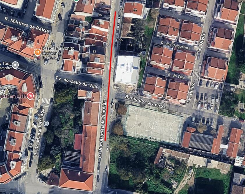 - Circulação condicionada, e paragem e estacionamento proibidos, na Rua Dom Tomás de Almeida, em toda a zona de intervenção dos trabalhos, exceto a veículos adstritos aos mesmos, de moradores e de emergência, desde que as condições dos trabalhos o permitam.