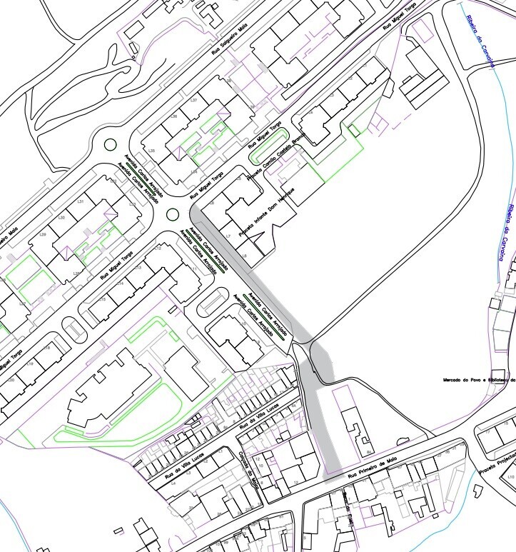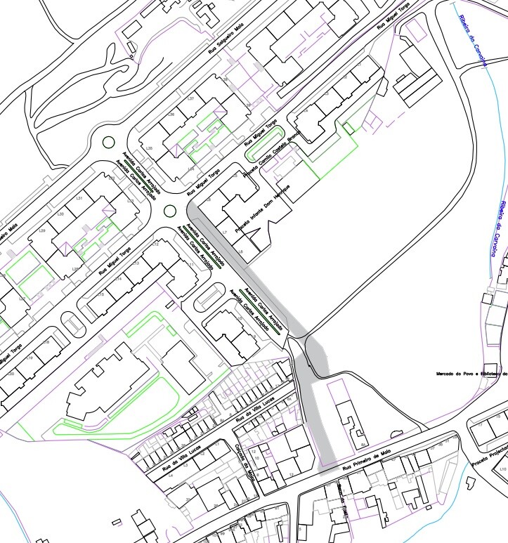 - Circulação condicionada, paragem e estacionamento proibidos, na Avenida Carlos Arrojado, em toda a zona de intervenção dos trabalhos, exceto veículos adstritos à obra, de moradores e de emergência.