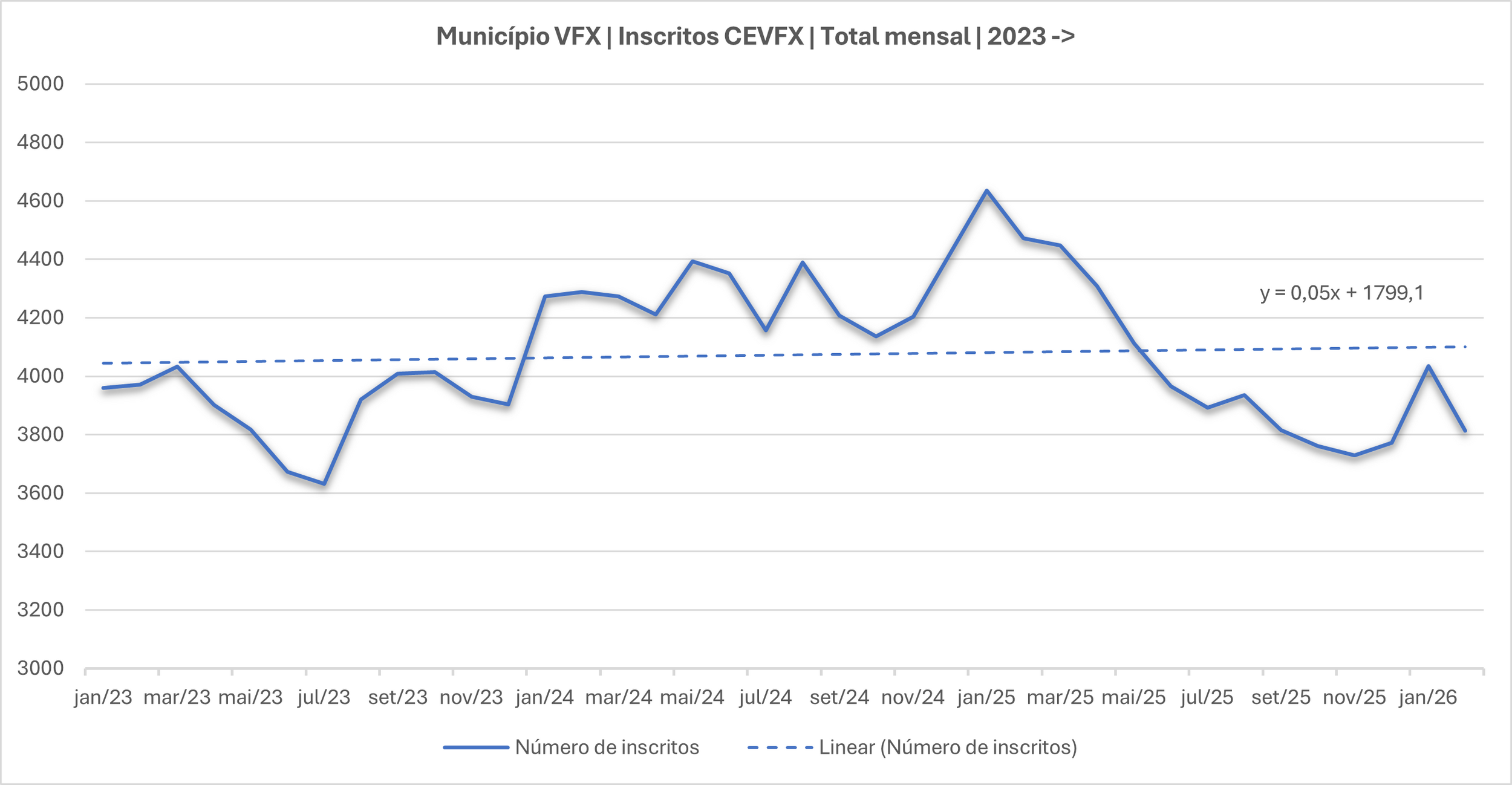- Existiu uma diminuição mensal de 67 inscritos no CEVFX.