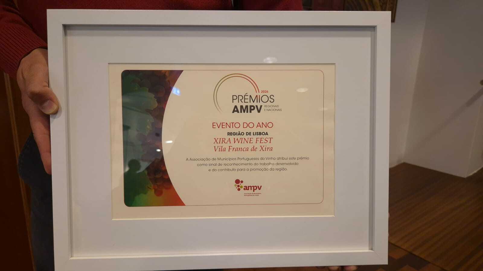 O “Xira Wine Fest” foi distinguido com o Prémio Evento do Ano da Região de Lisboa, pela Associação de Municípios Portugueses do Vinho, entregue no Fórum da AMPV, realizado na quarta-feira, 8 de abril, em Torres Vedras.
