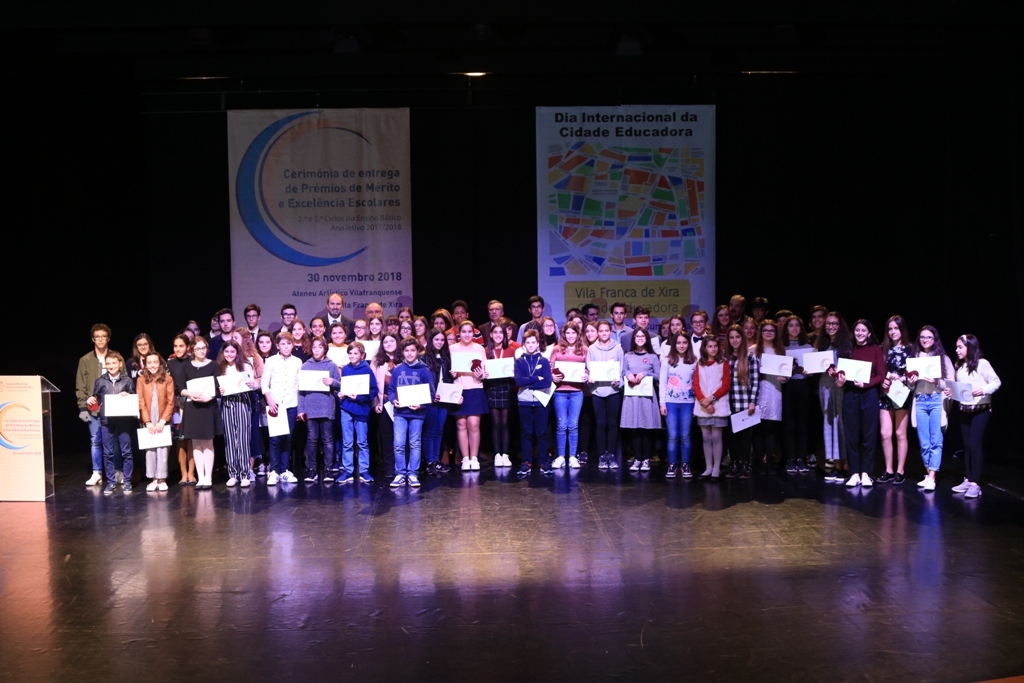 Teve lugar na passada sexta-feira, 30 de novembro, no Auditório do Ateneu Artístico Vilafranquense, mais uma edição da Cerimónia de entrega de Prémios de Mérito e Excelência Escolares. Naquela que é já a quarta edição consecutiva desta Gala, promovida pelo Município de Vila Franca de Xira, foram premiados 62 alunos dos vários agrupamentos de escolas do concelho, e também do CEBI, que se distinguiram no passado ano letivo (2017-2018) pelo seu desempenho académico.