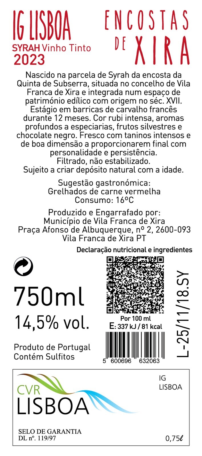 Encostas de Xira Syrah - Edição Limitada "Aniversário 80 anos Barco Varino Liberdade" | 750 ml | 14.5% vol.